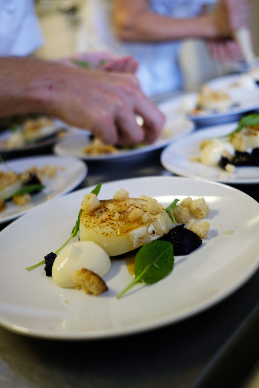 Bakad getost med betor, surdegskrutonger, honung och salvia