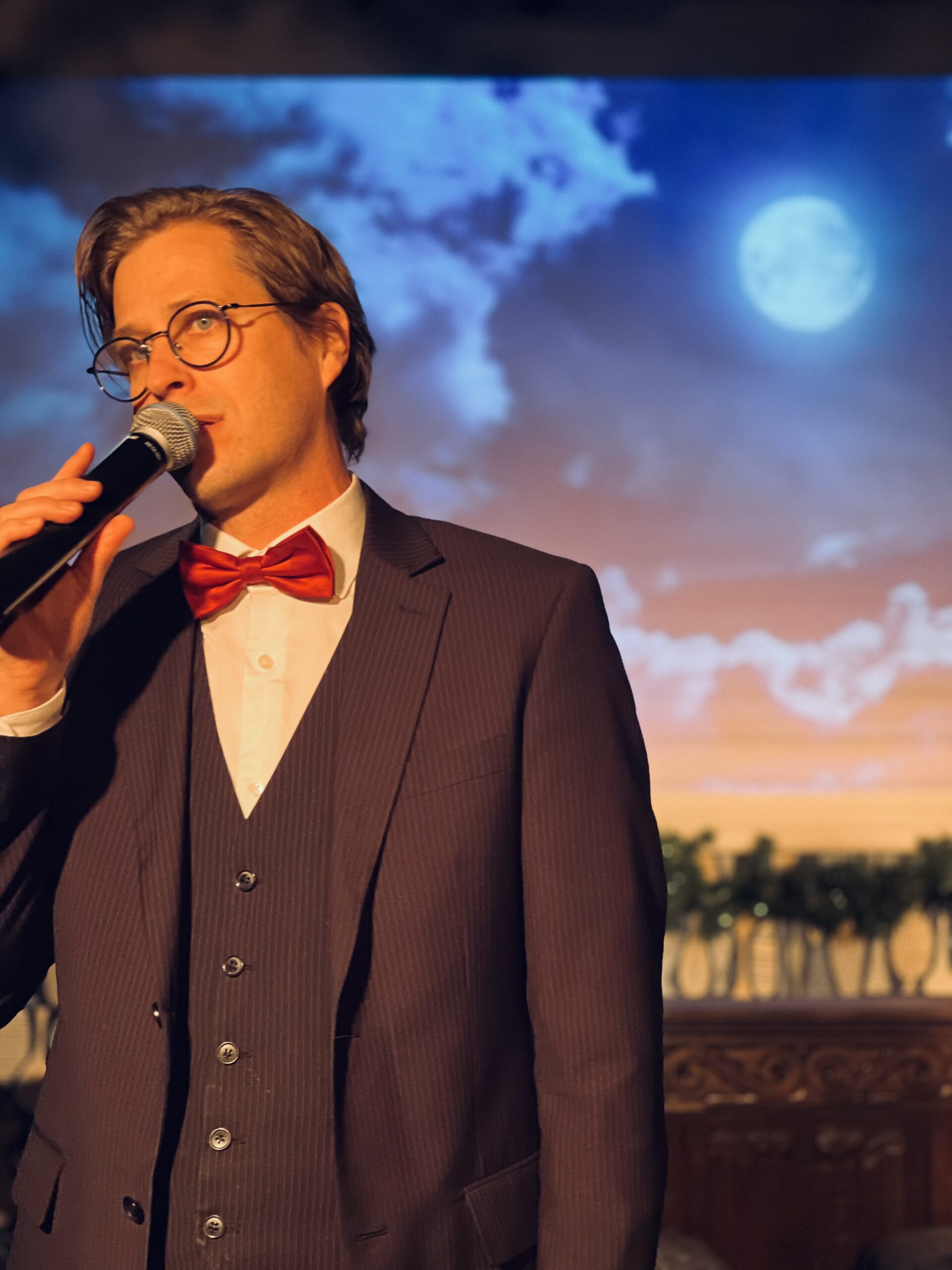 Fly julstressen en stund och njut av sång, musik och massvis med humor samt en trerättersmeny i julens tecken.